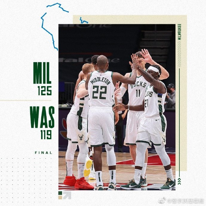 雄鹿(24-14):字母哥33分11板11助攻,大洛11分5板2助攻,迪文岑佐10分13板3助攻2断,霍勒迪18分8板3助攻,米德尔顿16分5板8助攻2断,康诺顿11分5板,波蒂斯14分8板,福布斯10分。