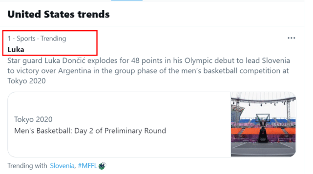 来源:24直播网07-27 11:3824直播网讯 ,东契奇在奥运首秀就轰下48分,率领斯洛文尼亚男篮118比100击败阿根廷。东契奇很快就冲上全美热搜的第一位! 这位年轻人把神奇带到了东京奥运会的球场上,又把纪录刷爆了。