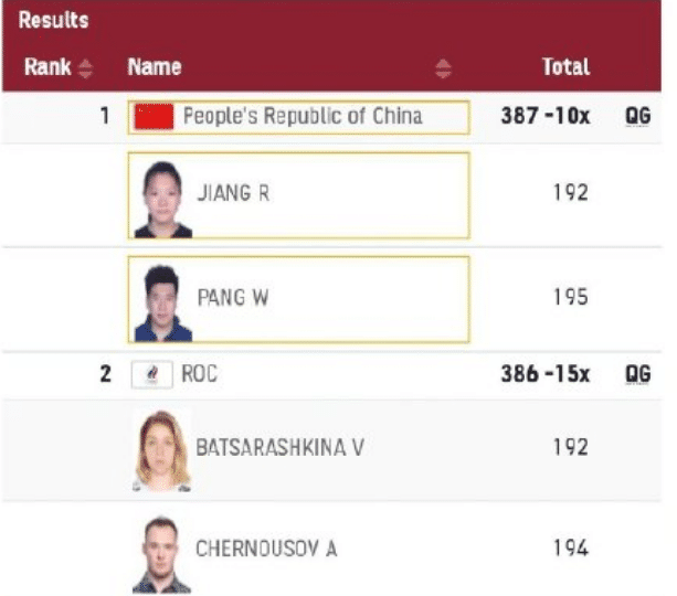 第六局,庞伟和姜冉馨打出20.3环,但是俄罗斯20.6环,第七局中国19.7环,俄罗斯失误,追回2分,6比8落后。第八局开始,中国组合连续发威,12比8反超比分,掌握主动。俄罗斯组合追了2分,第12局,中国组合再次胜出,14比10,拿到了赛点。