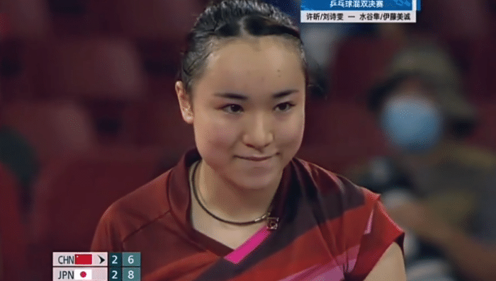 除了日媒的疯狂,伊藤美诚也终于实现了自己奥运会夺金的梦想,还是本土作战。这场比赛结束之后,伊藤美诚在比赛中的一个笑容也火了,在社交媒体上引起热议,那就是在第5局,日本队已经2-2扳平了总分,同时以8-6领先刘诗雯和许昕的组合,这个时候的伊藤美诚露出了一个笑容,也被不少球迷理解为是蔑视一笑,甚至是在嘲笑中国队的组合,而伊藤美诚的这个笑容也引发很多人的不满。