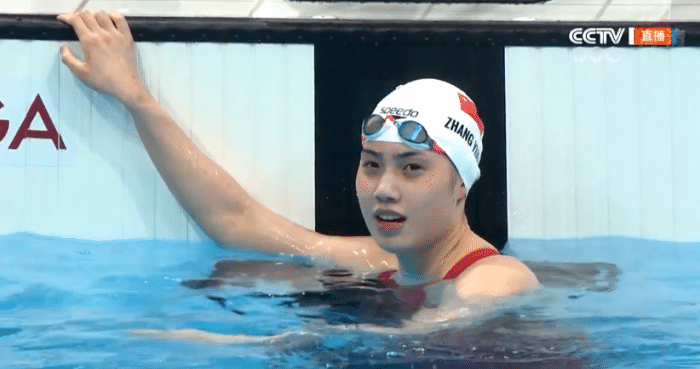 55秒64!张雨霏距离金牌仅差0.05秒,摘银后一脸惊讶直摇头