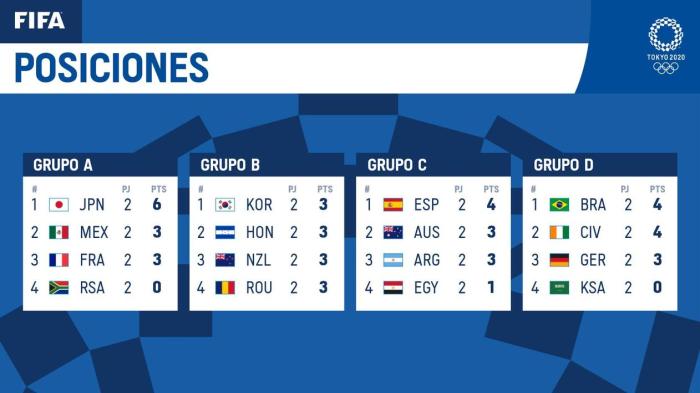奥运男足积分榜:日本、韩国、西班牙、巴西领跑