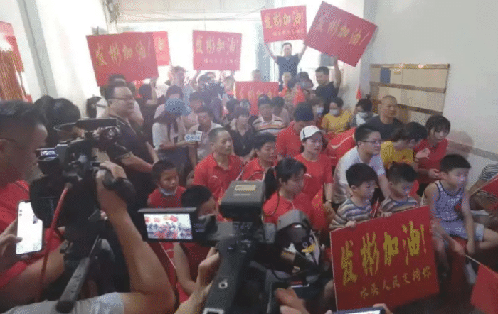 此时,远在福建老家的李发彬亲友也显得非常兴奋。他们在电视前欢呼雀跃,亲友们纷纷喊起了“发彬,加油!发彬,加油!”而李发彬的父母在接受采访时也非常激动,现场已经成为了一片欢乐的海洋,亲友们此时也在屋外,放鞭炮位李发彬庆祝。