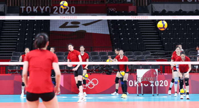 中国女排是在19日抵达东京的,20日开始恢复性训练,21日在比赛场馆有明体育馆进行训练,这也是中国女排去到东京之后唯一一次适应比赛球馆的机会,所以全队都非常珍惜这次的机会。之后中国女排就是在自己租的没有空调的训练馆进行备战,条件一定很艰苦,不仅没有空调,球馆还小,是地铁公司的篮球场临时划线改成的排球馆,所以对于中国女排的备战也有一定的影响。