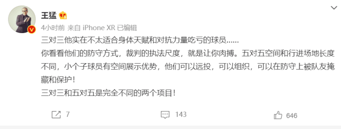 王猛也是谈到了3V3篮球最基本的天赋,那就是身体和对抗,直言“三对三和五对五是完全不同的两个项目!”朱彦硕也是犀利点评。其实之前郑毅就说了,3V3和5V5截然不同,字里行间点出对高诗岩入选的不认同,他也说了3V3选人最好选195-2米左右身高的球员,没有明显对位劣势且攻守均衡,哎,只可惜,某些领导自认为自己懂球!