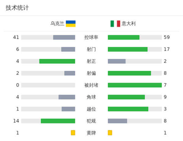 意大利0-0乌克兰 穆德里克禁区倒地未判点