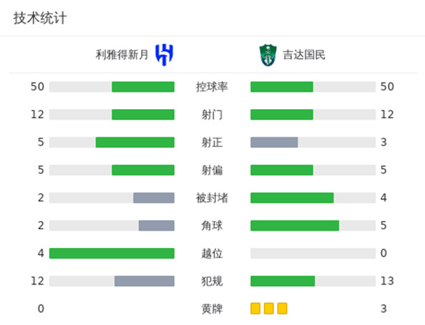 比赛第2分钟,库利巴利中圈位置送出精准长传调度打穿吉达国民防线,禁区内米林科维奇跟进胸停后捅射得分,新月梦幻开局1-0领先↓