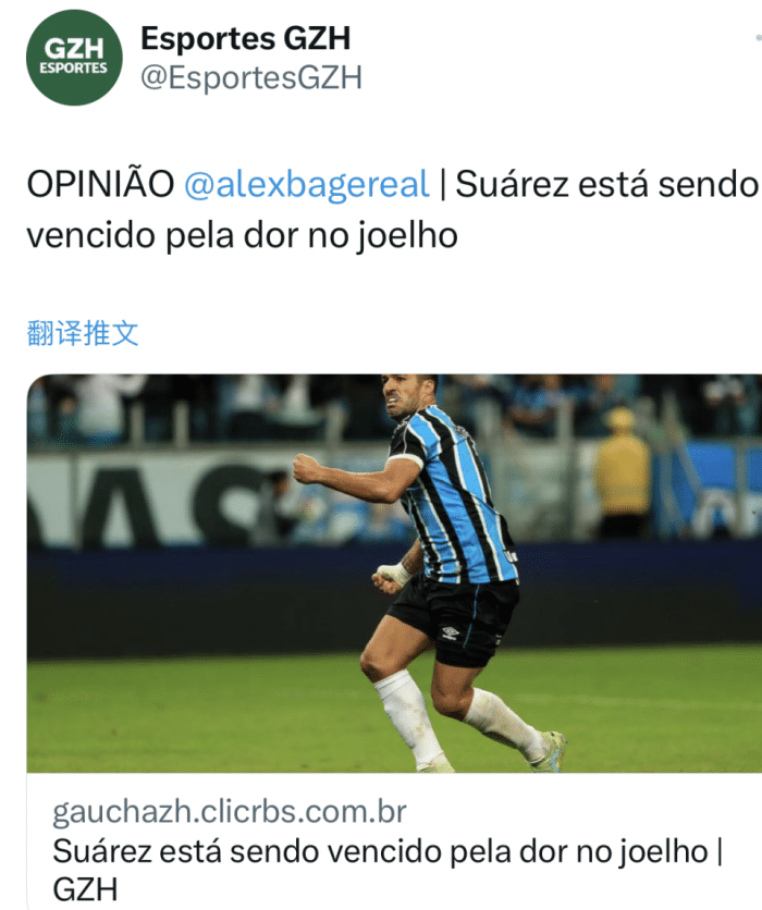 据悉,苏亚雷斯已经向目前所效力的巴甲格雷米奥队管理层,告知自己无法忍受右膝伤病,这甚至已经影响了他和家人的正常生活,苏神考虑在未来几周内退役。目前还不知道确切的退役时间,未来几天球员将与球队会面来确定这一情况。苏亚雷斯右膝的伤病可以追溯到2020年效力巴萨时,他右膝半月板受伤,伤缺长达8个月。如今随着年龄增长,右膝的伤病已经严重影响苏亚雷斯。