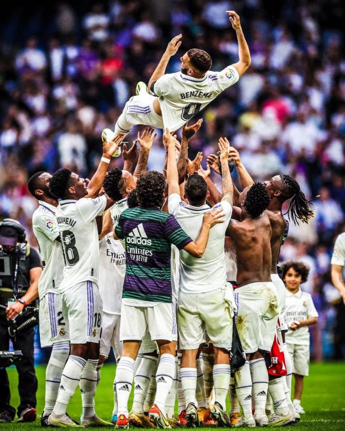 赛后,皇马球员将今夏要离队的本泽马、阿森西奥、阿扎尔和马里亚诺等4人,高高抛起致敬。北京时间6月18点,皇马将为本泽马召开告别仪式,地点在伯纳乌城。届时本泽马会和皇马俱乐部、球迷还有他辉煌的14年白衣生涯,做最后的告别。