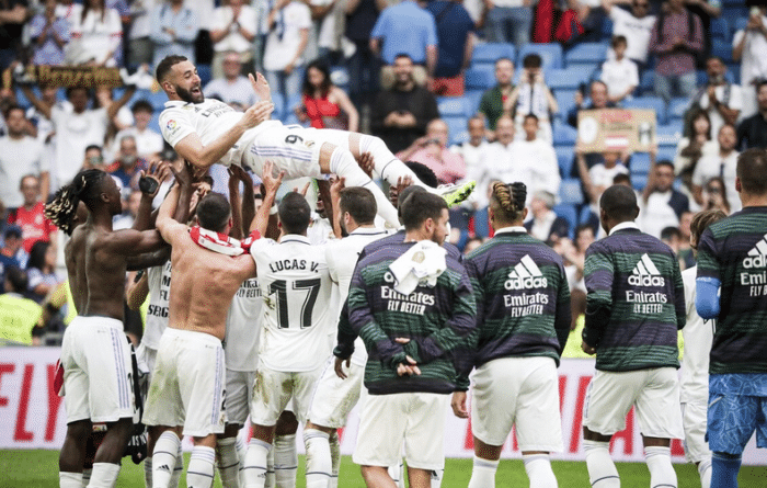 来源:24直播网06-05 15:5524直播网讯06月05日西甲联赛第38轮,本泽马完美告别皇马,在本轮比赛打进1球,帮助皇马1-1踢平毕尔巴鄂竞技,完成本赛季的收官,以78分获得西甲第二名,第一名的巴萨88分,第三名的马竞77分。本轮比赛,皇马主帅安切洛蒂亮出强阵,小熊、本泽马、罗德里戈、塞瓦略斯、克罗斯、卡马文加、吕迪格、纳乔、米利唐、卡瓦哈尔、库尔图瓦11人首发,呈433阵型,莫德里奇、阿森西奥、楚阿梅尼、巴斯克斯替补登场。