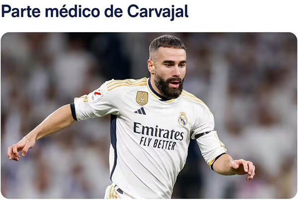 来源:24直播网12-05 16:4324直播网12月05日讯 ,西甲豪门皇家马德里官方宣布,球队的主力右后卫卡瓦哈尔经过检查后,被诊断出左腿比目鱼肌受伤,伤缺时间待定。