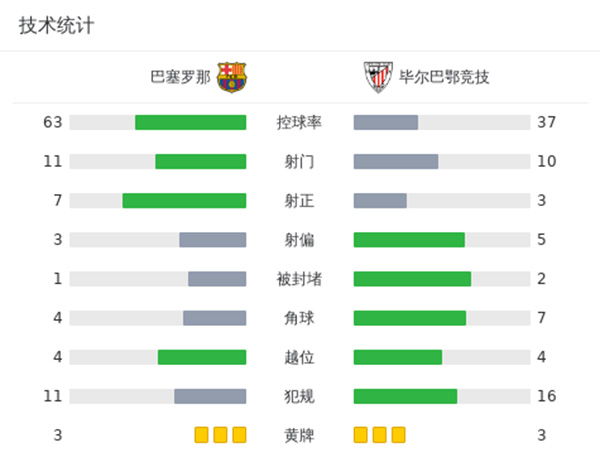 最终全场比赛结束,巴萨1-0毕尔巴鄂。