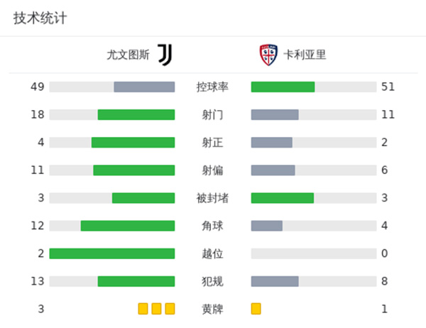 尤文2-1卡利亚里 布雷默破门鲁加尼建功