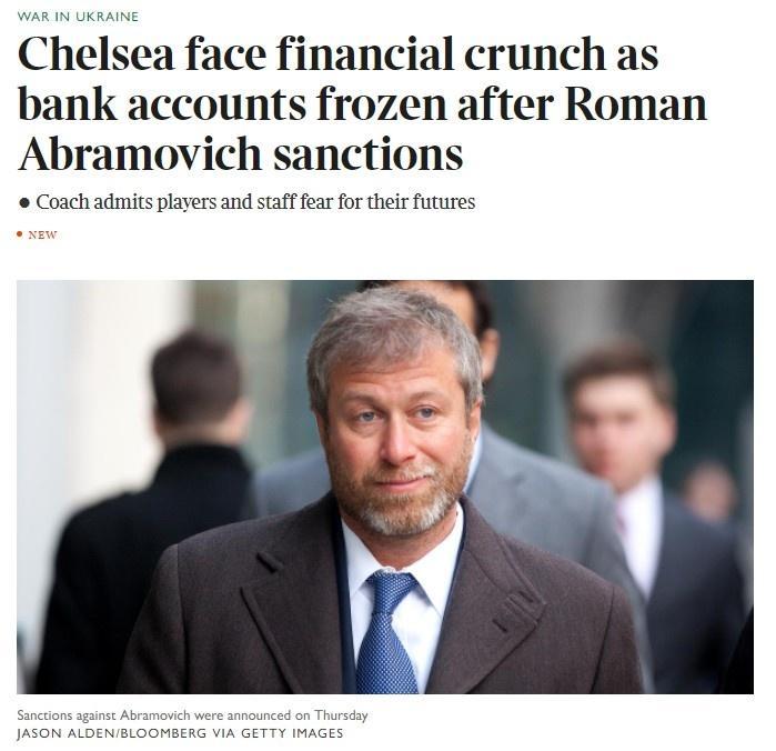 泰晤士:切尔西银行账户被冻结,日常运营面临瘫痪