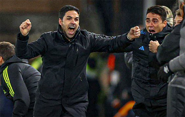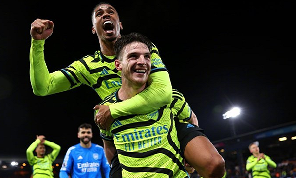 最后赖斯完成绝杀,场边的阿尔特塔非常激动,差点就冲过去和球员们一起庆祝了,被工作人员及时拉住。阿森纳的球员们也疯狂庆祝这个来之不易、为球队带来3分的进球,赖斯和队友们跑到阿森纳的球迷看台区,庆祝欢呼。