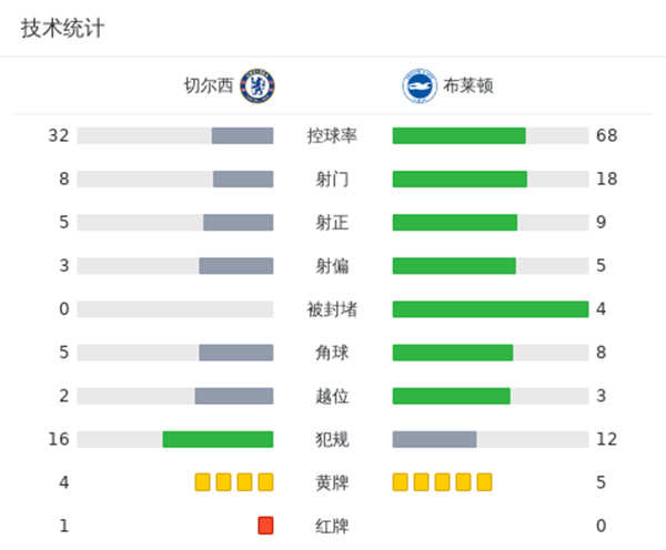 切尔西3-2布莱顿 恩佐英超首球+双响加拉格尔染红