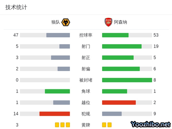 全场比赛结束,阿森纳2-0战胜狼队。