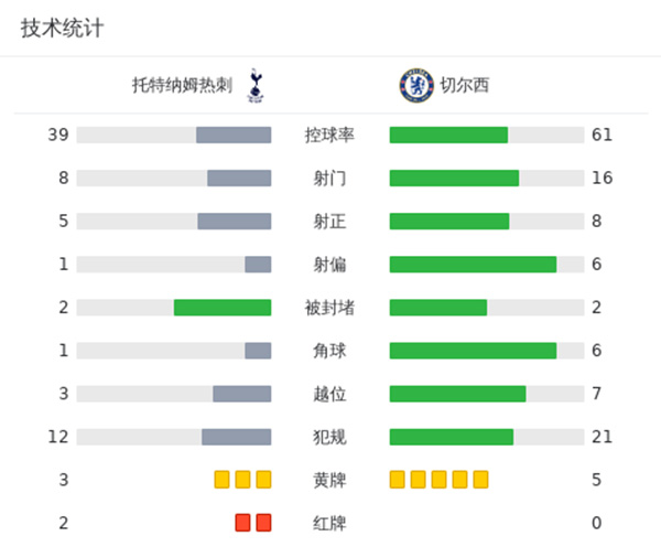 热刺1-4切尔西 罗梅罗红点杰克逊戴帽