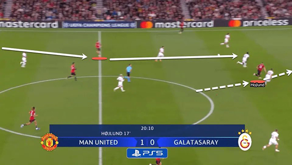 尤其在本方体能下降,以及对方找到应付曼联逼抢模式之后,红魔中前场球员只能在逼抢和回防之间举棋不定,结果就是轻而易举被对手通过,打到本方后场,造成失球。