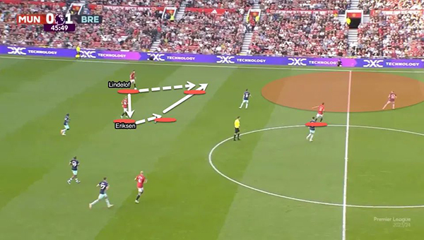 然而,只要稍作调整,曼联可以改变这种不利的局面,只要让奥纳纳延长控球时间,放弃后场传递,让更多球员压到中场,然后接应门将的长传。