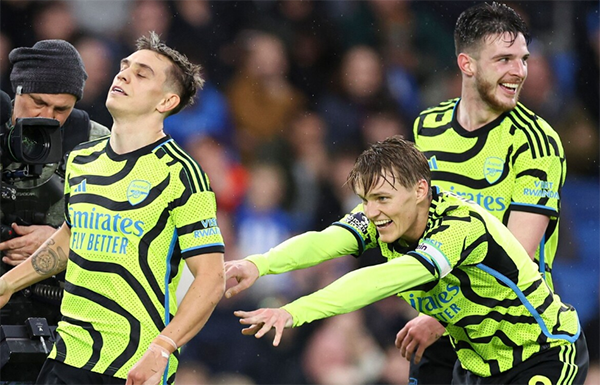 成绩显示,阿森纳创下3大盛况,第一、本年度实现了狂飙,在英超未尝一败,从1月份的首场英超即第21轮5-0大胜水晶宫开始,一直到本轮英超3-0击败布莱顿,收获11连不败10胜1平。第二、本年度在英超从未出现比分落后;第三、积分榜上,阿森纳露出冠军相,4相数据全面霸榜,压制利物浦、曼城,4相数据分别为进球数75个(英超最多)、丢球数24个(英超最少)、净胜球51(英超最多)、积分71个(英超最多)。