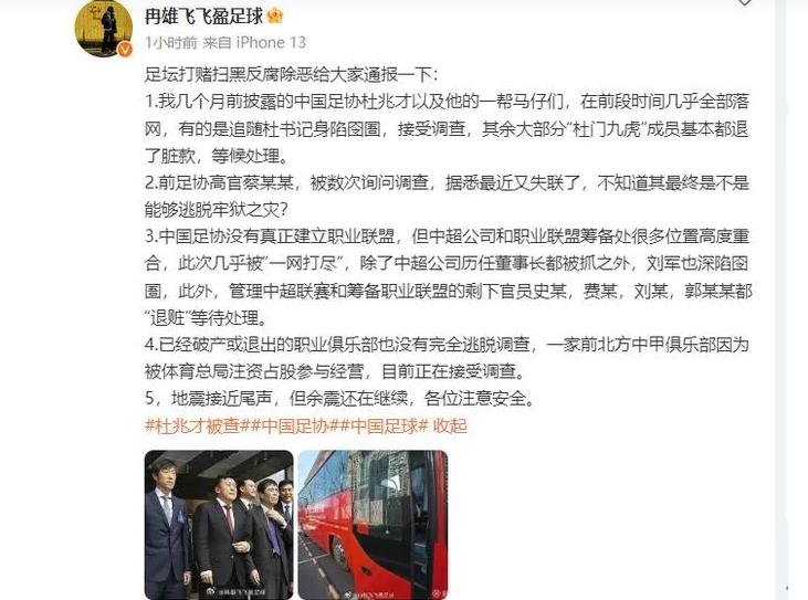 可是在9月20日7时,名记冉雄飞的再一次点名,也是让蔡振华再一次被顶到了风口浪尖。在社交媒体上,名记冉雄飞表示:前足协高管蔡某,这数次询问调查,据悉,最近又失联了,不知道其最终是不是能够逃脱牢狱之灾。
