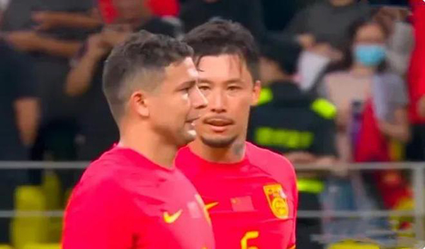 第二个画面,当国足守转攻,张琳芃被抢断后,叙利亚打出反击差点制造出破门良机的时候,因为此前的上抢,回到防守位置慢了一些的艾克森被张琳芃一番怒吼,不过艾克森选择了无视。